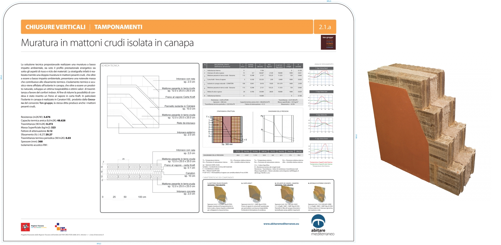 La presentazione dei prodotti si sviluppa seguendo un percorso basato sulla classificazione del sistema tecnologico “edificio” della norma UNI 8290, con l’obiettivo di fornire al visitatore una visione completa di buone pratiche del costruire in ambito mediterraneo, con particolare riferimento al contenimento energetico.
